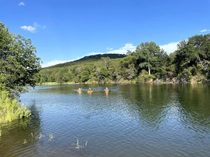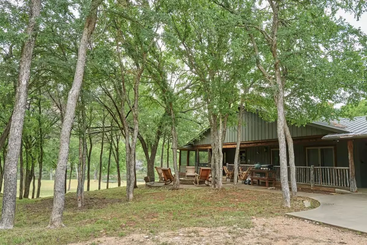 Disconnect from the rush and reconnect with serenity! This home (2285 sq ft) sits on 80+ acres directly on the Brazos River. The water is clear, and the views are breathtaking. Stone bluffs glow orange with the sunrise. Birds soar overhead, deer abound, and fish are plentiful. Imagine catching the sunset while sitting in the river, beverage in hand. After a day of water play, indulge in a cookout on the Big Green Egg followed by s'mores. Relax in a rocking chair by the house or river.