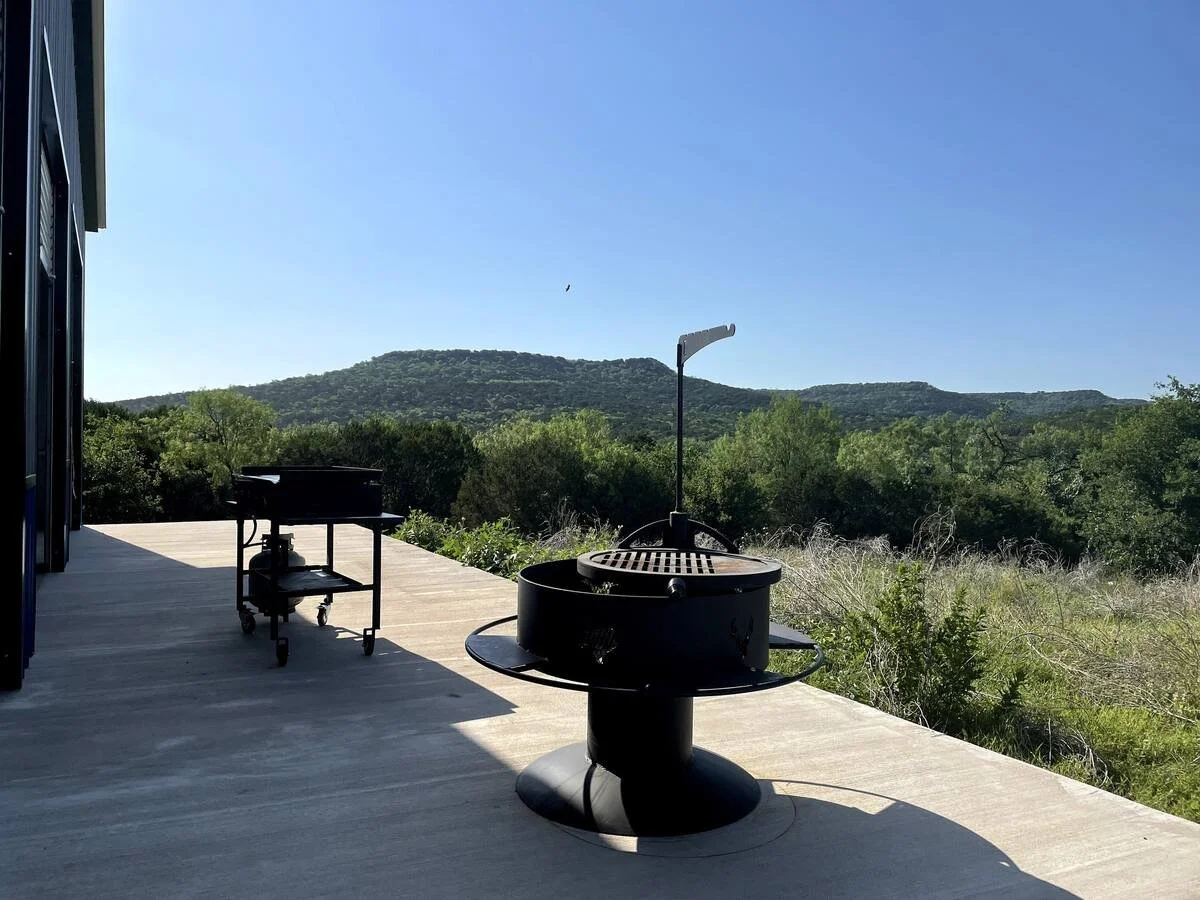 Answer the call of the Texas countryside with this stylish, renovated shipping container as your next getaway destination. Immerse yourself in the picturesque landscape, unwind on the balcony, or soak in the private hot tub under the stars. With its cozy fireplace and inviting outdoor dining deck with a gas grill, this retreat is perfect for quiet evenings after exploring Lake Mineral Wells State Park. Discover the true essence of relaxation at this idyllic vacation rental.